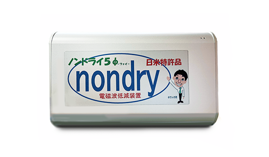 そして電気の専門家として、創業者がどうしても残したかった技術がありました。それらの全てを集結して誕生したのが電磁波低減装置『eでんき』、PCの電磁波ノイズを抑える『ノンドライ』です。構造は至ってシンプルですが、電気機器への交流電圧の接続線路の途中に調整回路を配置し、セラミックやゲルマニウムを充填材に使用することにより電圧波形を各電気機器の動作能力に適した波形に調整することを可能にしました。これらの技術は「電気機器の使用者への身体的障害を緩和することが期待される」と国際的にも認められ、日本及び米国にて特許を取得することとなりました。